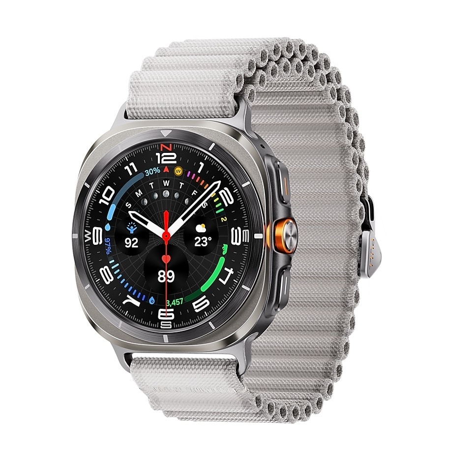 The Galaxy Watch Ultra is Samsung’s priciest and most powerful smartwatch yet. Powered by the company’s first-ever 3nm mobile chip, the Exynos W1000, the wearable runs Wear OS 5 with One UI 6 Watch on top. It boasts a robust build, a massive battery, and industry-leading health, activity, and workout-tracking features. The device is suitable for all kinds of users, including pro athletes.