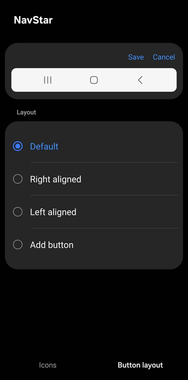 5. On the top preview, your added shortcuts appear on the left of the default navigation bar β€” press and hold the buttons to move them to the desired location