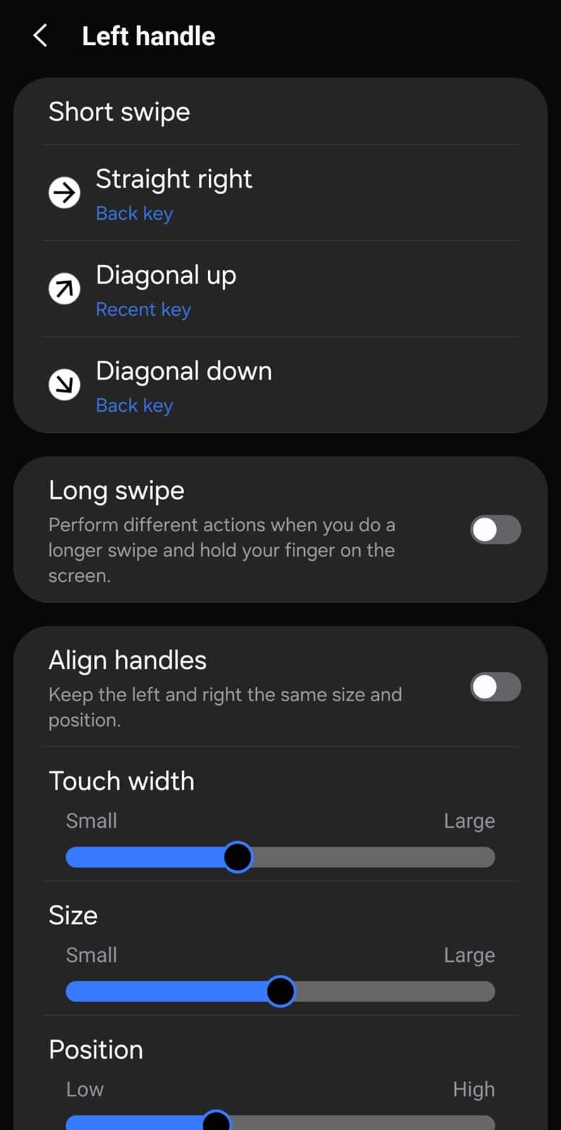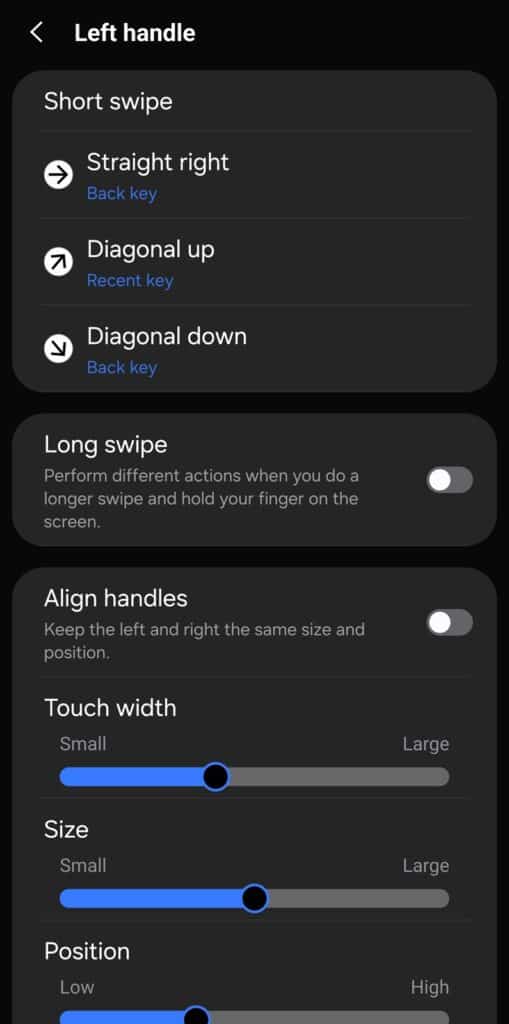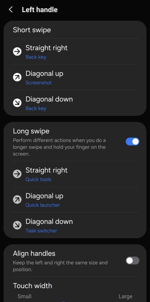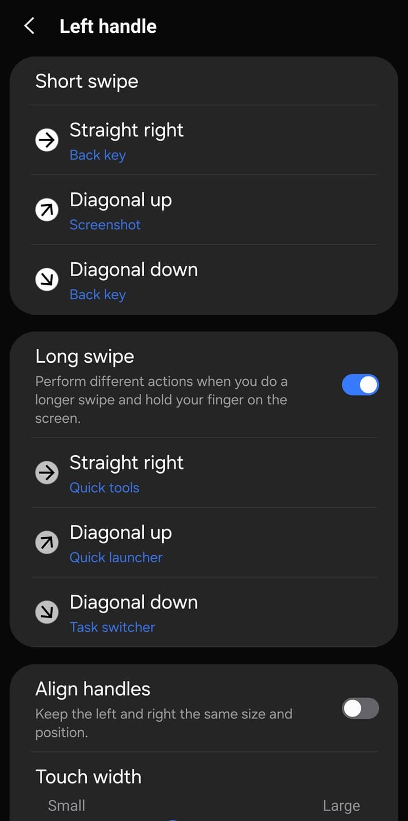 5. You can also enable the Long swipe function to assign a different action to a longer form of the same gesture
