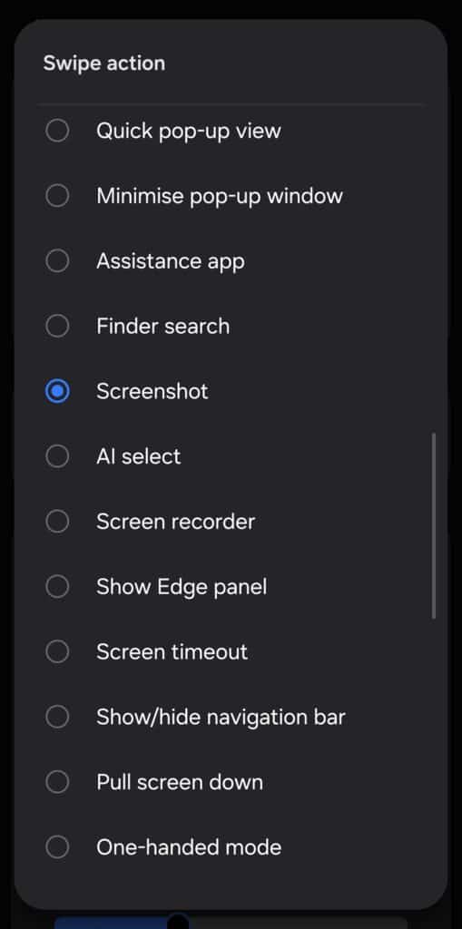 4. You can then assign the screenshot action to one or all three gestures β€” Straight right, Diagonal up, and Diagonal down