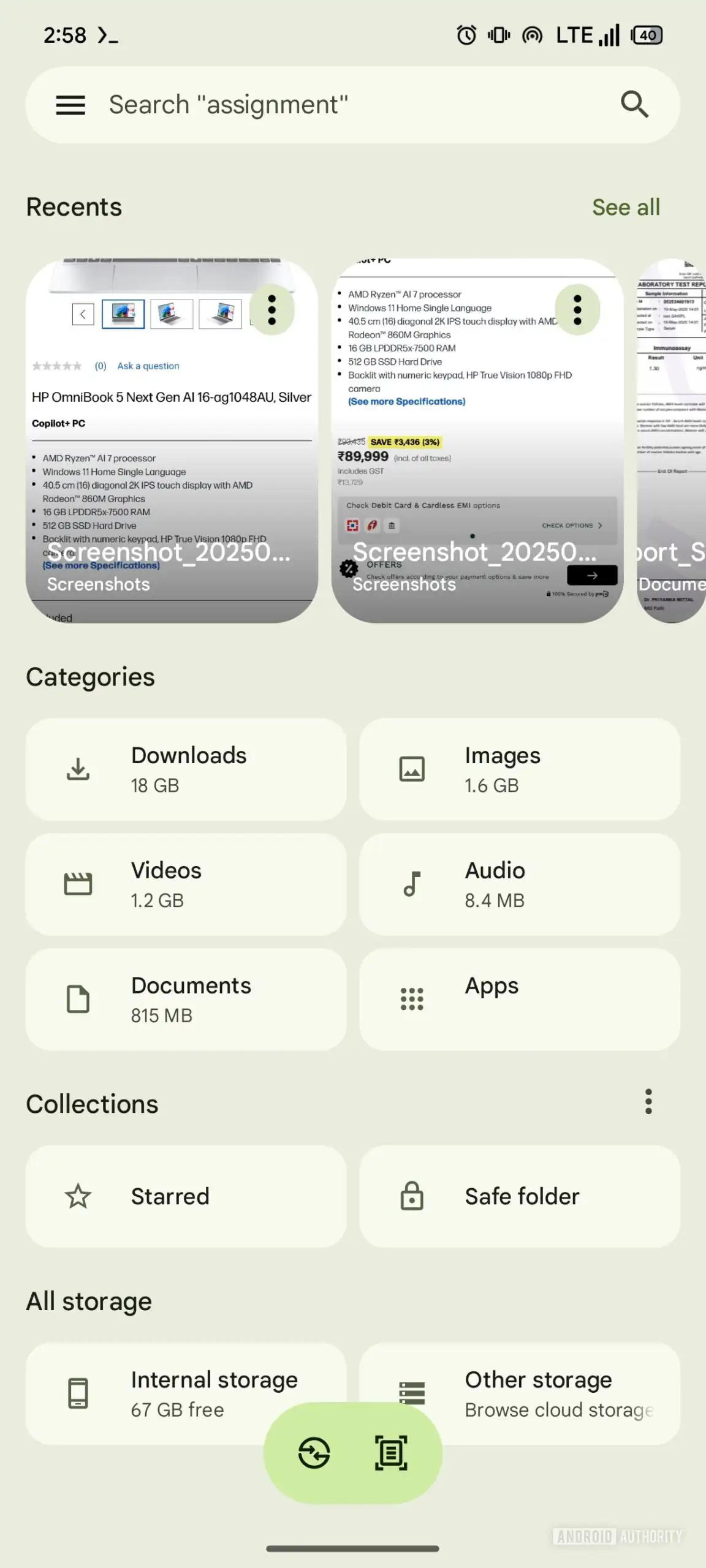 Right off the bat, the home screen feels different. For instance, the Quick Share and File Scanner buttons, which used to be tucked away on the bottom right, now share center stage side-by-side. This new arrangement, paired with cleaner button styling, gives the interface a more polished and balanced vibe. That said, the enlarged thumbnails in the Recents section are a bit of an eyesore.