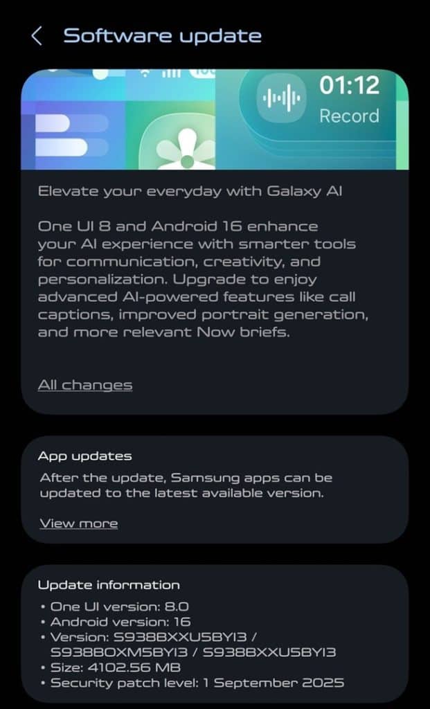 Thankfully, the wait wasn’t long. One UI 8 is now available for the Galaxy S25 lineup widely across Europe, beyond the initial beta markets. Samsung is pushing an OTA file weighing over 4GB, though the exact size varies depending on the market and model. The September 2025 security patch is part of the package, though the update is primarily about One UI 8.