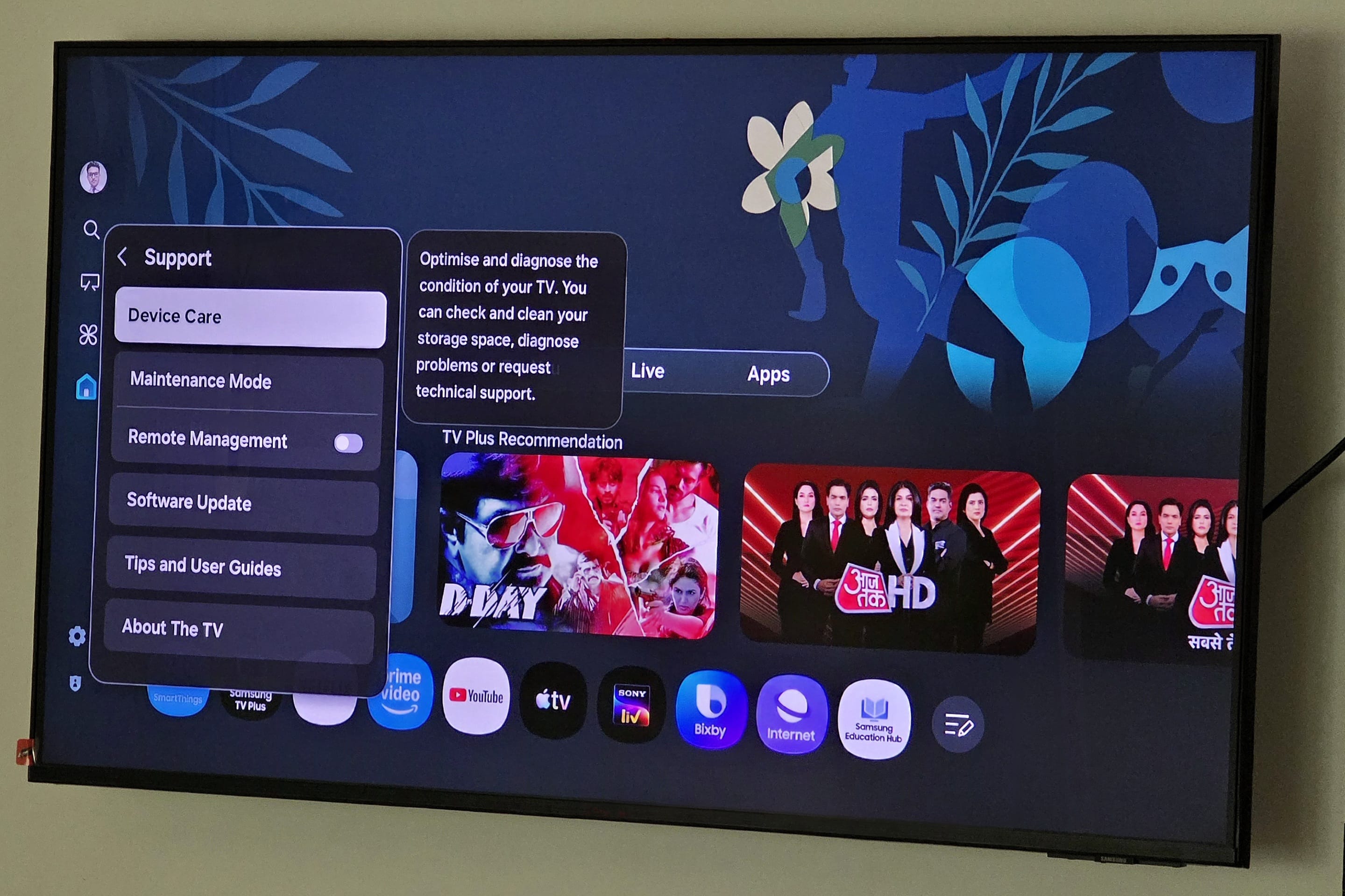 Samsung’s newer smart TVs running One UI for TV include a Device Care suite designed to keep the system healthy. It helps manage memory, monitor performance, and suggest maintenance actions. You can run diagnostic checks when something doesn’t feel right. The Self Diagnosis tool is part of this suite and lets you test individual components of your TV without any extra equipment or apps.