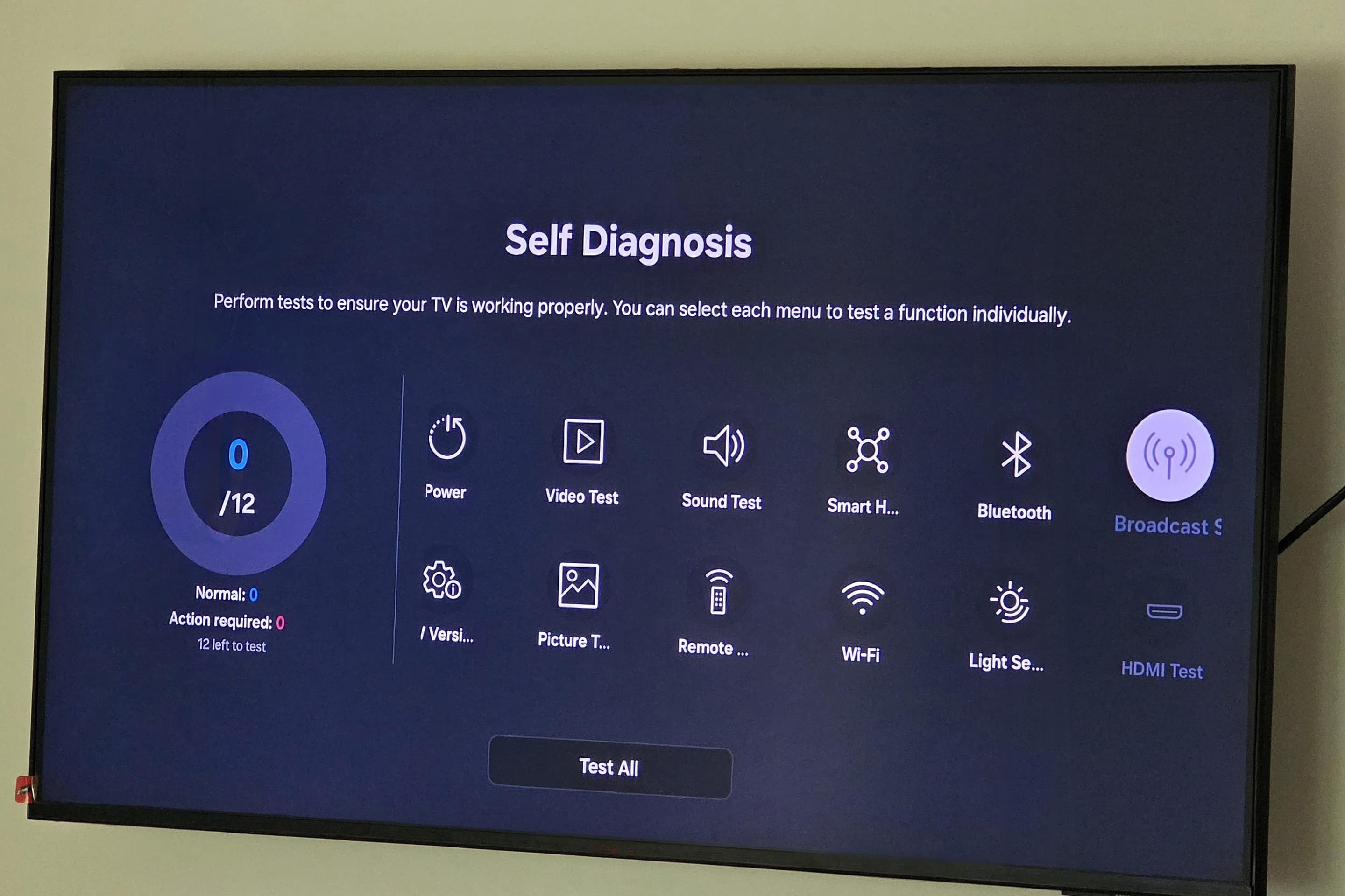But if this automatic step doesn’t detect any issues and you still feel something’s amiss, you can try troubleshooting using the built-in diagnostics. Simply use the remote to select Self Diagnosis on the bottom bar. You get a new menu where you can manually test a wide range of TV functions and hardware components. These tests can help you pinpoint whether an issue is software-related, hardware-related, or caused by an external connection.