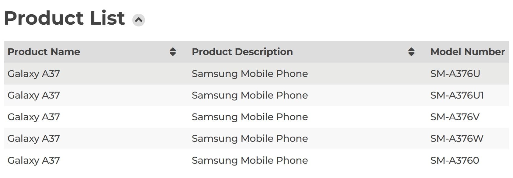 - SM-A376U — US carrier-locked