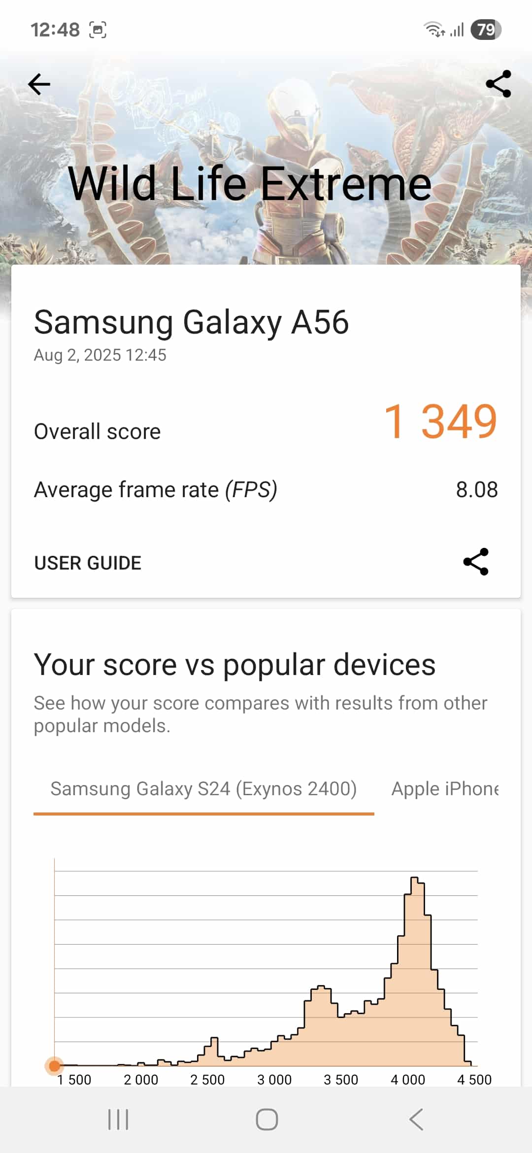 However, the biggest improvement is in the GPU segment, at least on paper. The Galaxy A56 scored 6,945 points, while the A55 achieved only 3,974. The difference is around 75%, highlighting Samsung’s effort in improving graphics performance in the latest chip. On top of that, the device achieved a decent 3D Mark Wildfire Extreme score of 1349 points, which is around 300 points more than the A55.