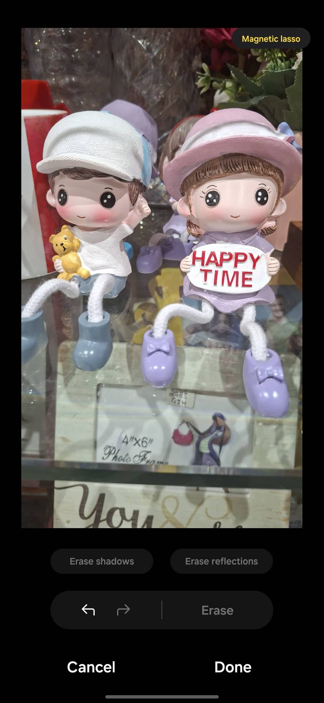 Speaking of Object Eraser, it lets you remove objects or even people from your photos. As you can see in the screenshots below, I tried to remove the yellow patch stuck onto the hat of the doll. While the tool did erase the patch, it also removed part of the hat’s curved edge. Still, the overall result was quite clean and impressive.