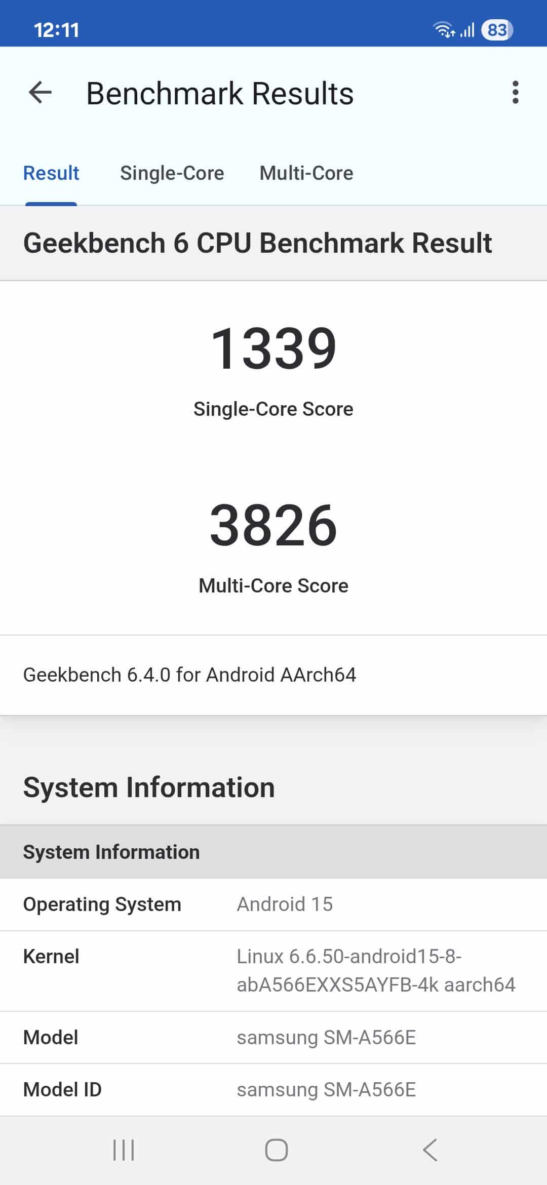 Now, talking about the benchmark test, on the Geekbench 6 platform, the single-core test recorded 1,339 points, while the multi-core test got 3,826 points. In comparison, the Galaxy A55’s Exynos 1480 chip scored 1,147 and 3,360 points, respectively. So theoretically, the new chip can deliver slightly better processing power than the previous generation.