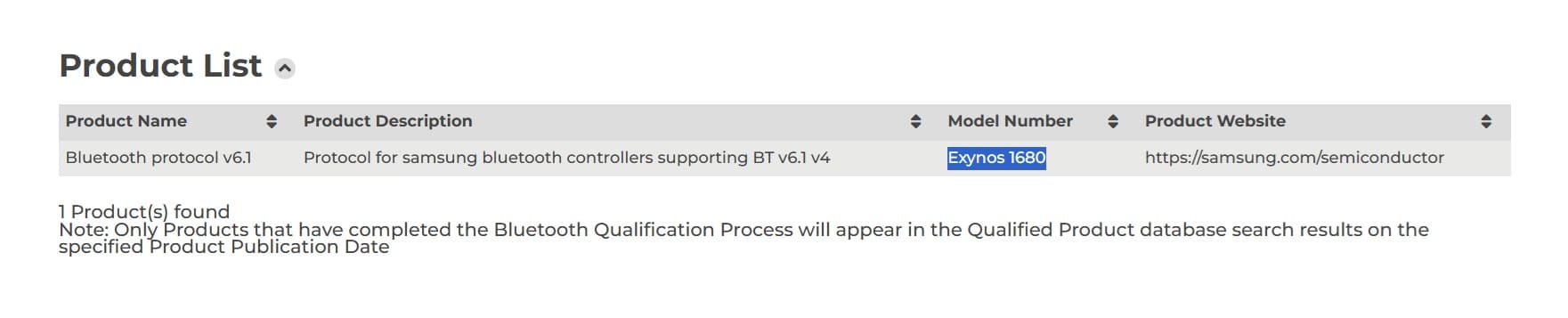 Alongside the Galaxy S26 flagships, Samsung is hard at work on its 2026 mid-range lineup. The Galaxy A57 should top the line, powered by Samsung’s in-house Exynos 1680 processor. Following an appearance on Geekbench a few months ago, the unannounced chip has now surfaced on the Bluetooth SIG website, confirming its ongoing development.