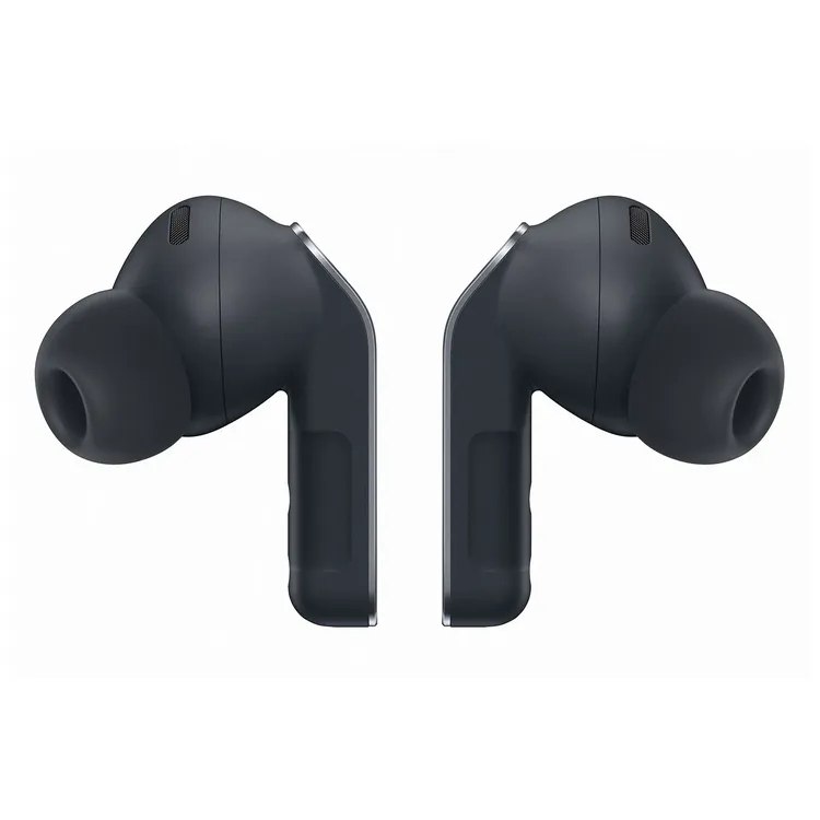 Starting with the design, Galaxy Buds 4 Pro will adopt the familiar stem-style look, but with an ergonomic design that improves your listening experience. According to the listing, Samsung designed the earbuds “for those who prioritize style, innovation, and high-quality audio”. They will come with silicone ear tips (multiple tip sizes included in the box), so you get a comfortable and secure fit. We can see microphone cutouts at the top (circular grille) and bottom of each earbud.