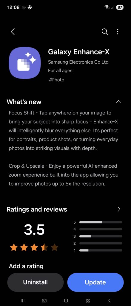 Note that the latest version is only available for devices running One UI 8. This includes Galaxy Z Fold 7, Galaxy Z Flip 7, Galaxy Z Flip 7 FE, and Galaxy S25 series (via beta program). To update the Galaxy Enhance-X app, you can go to the Galaxy Store and search for the app.