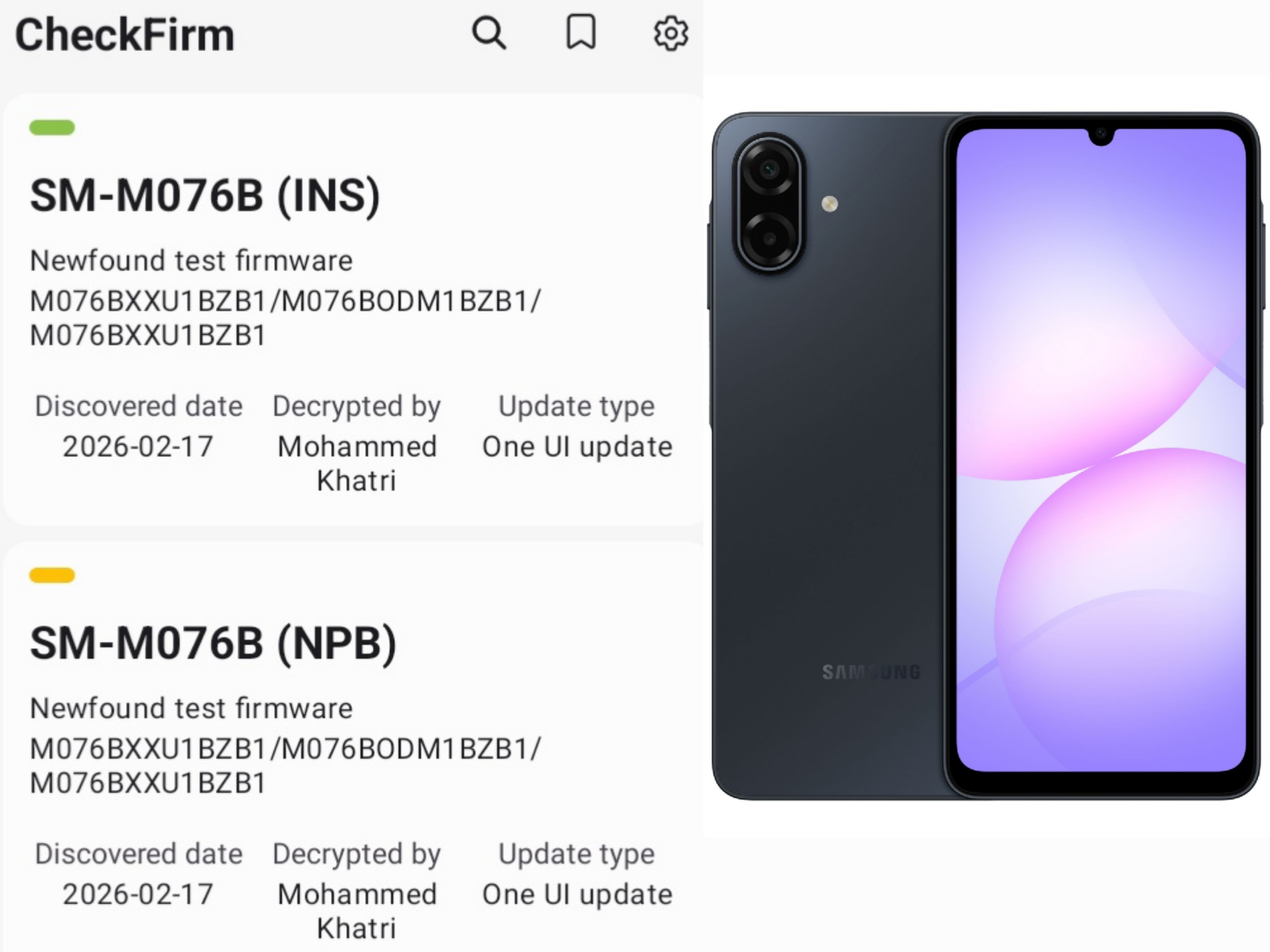 The upcoming Galaxy M17e has also shown up on Samsung’s servers with a One UI 8.5 build. The device should carry model number “SM-M076B.” Like the F70e, it is expected to launch with One UI 8. Later, it will receive One UI 8.5 as its first major update. The Galaxy M17e One UI 8.5 test firmware carries the build version M076BXXU1BZB1. We spotted the build on servers in India and Nepal.