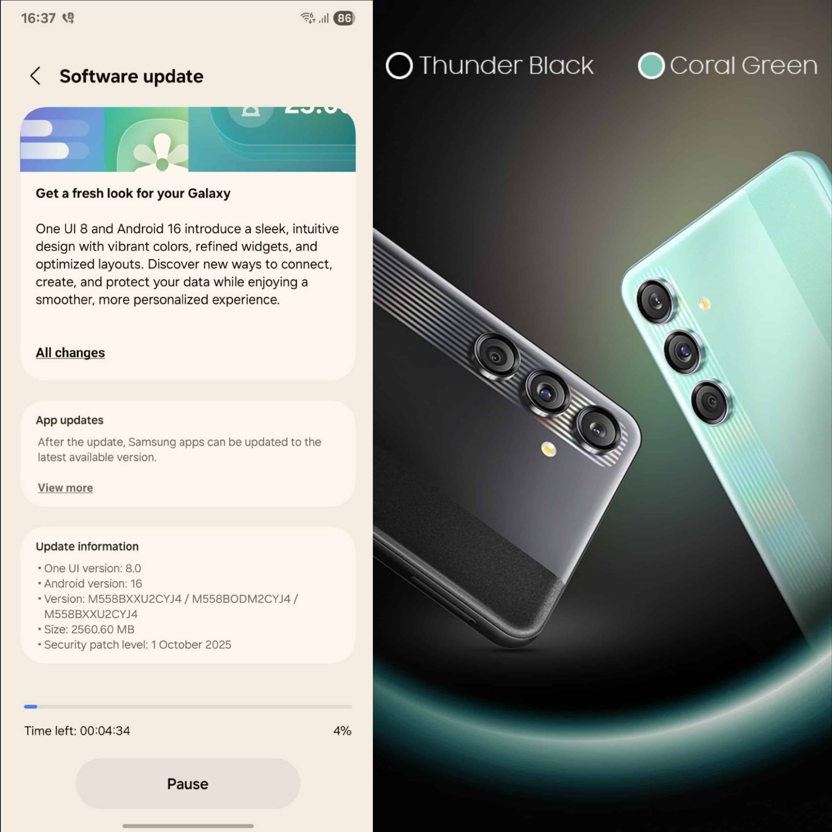 Android 16 marks the second major OS update for the Galaxy M55s and Galaxy F55. Launched with Android 14 out the box, the devices are promised to get updates up to Android 18. If you own a Galaxy M55s or Galaxy F55, you can check for the update by heading to Settings > Software update > Download and install. After downloading, tap Install now. That’s it!