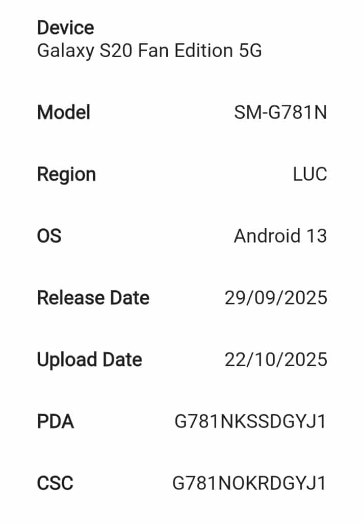 Samsung has rolled out the October 2025 security patch to more Galaxy devices. Most recently, the October update was released for the Galaxy S20 FE 5G, and the September patch for the Galaxy A05 (4G). Users of these devices may want to check for the latest firmware releases to strengthen their security, as both models have stopped receiving feature updates.