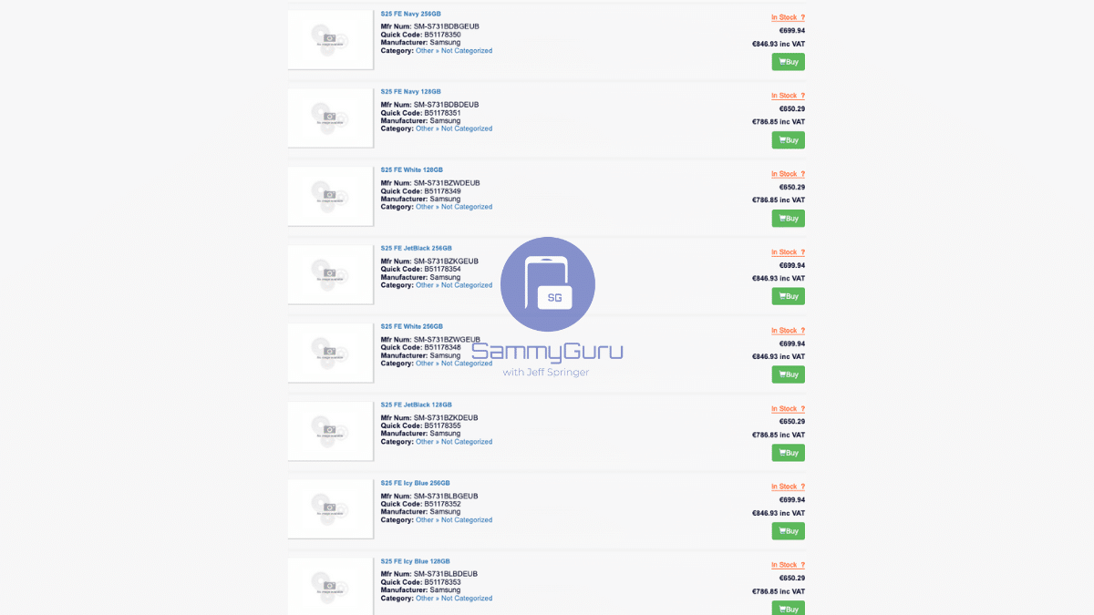 Retailer LamdaTek has listed the Galaxy S25 FE early in two storage variants: 128GB and 512GB. The listing also confirms the expected colors, which include JetBlack, Icy Blue, White and Navy. These are in line with an earlier report published today giving us our first official look at the upcoming flavors.