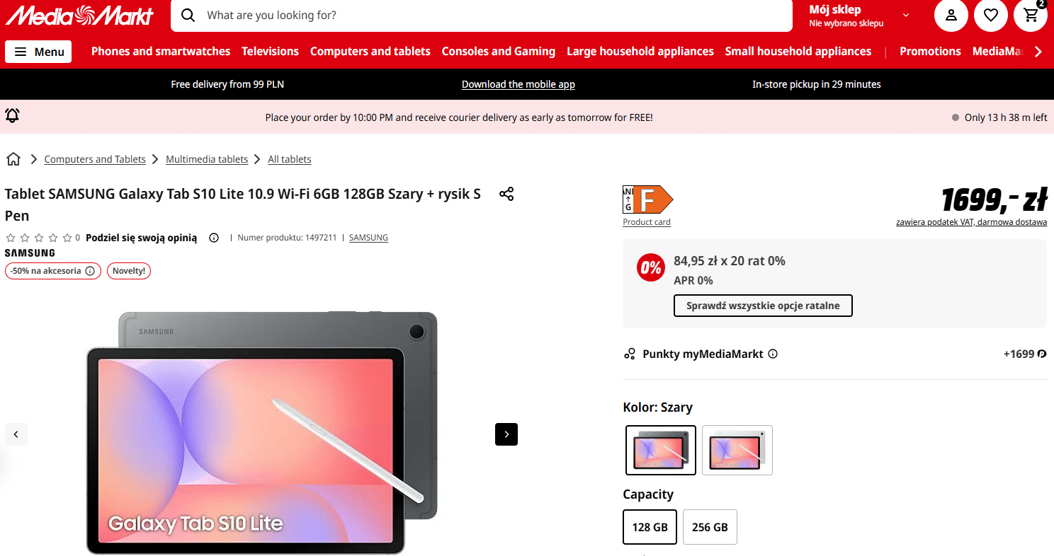 Alongside the premium tablet lineup, Samsung will also introduce the Galaxy Tab S10 Lite for budget-conscious buyers. However, ahead of its launch, retailer MediaMarkt has listed the device with complete details, including renders, specifications, and pricing. The tablet will feature a 10.9-inch LCD panel with a 90Hz refresh rate. It will be powered by an in-house Exynos 1380 processor, with 6GB+128GB and 8GB+256GB configurations. According to the listing, the former will cost 1699 PLN, while the latter will come with a 1999 PLN price tag.