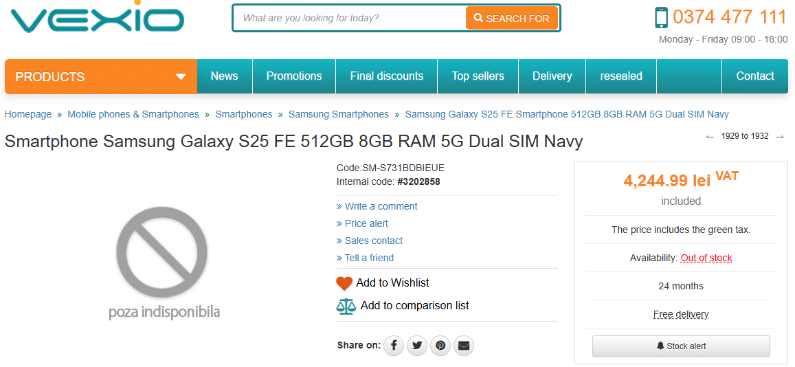 Starting with the Galaxy S25 FE, a Romanian retailer, Vexio, has listed the device with 512GB storage and an 8GB RAM configuration. The listing also mentions a few key details, including a 12MP front camera, a triple rear camera setup (50MP + 12MP + 8MP), and a 4,900 mAh battery. While we can also see its price, it is most probably a placeholder. Likewise, retailer Scheuss-Partner and ZanettiShop have also listed the upcoming Fan Edition model.