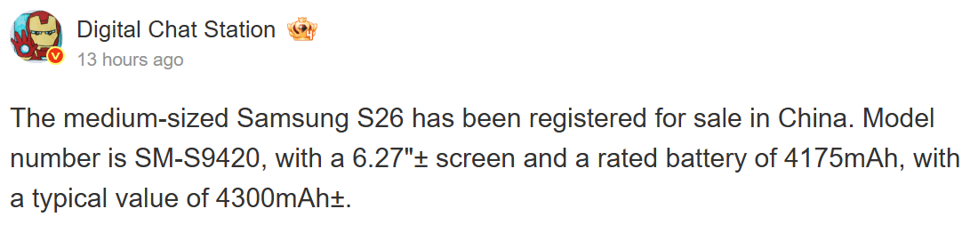 According to well-known tipster Digital Chat Station, the Galaxy S26 Pro will carry the model number SM-S9420 for the Chinese market. The phone may feature a 6.27-inch display, slightly larger than the 6.2-inch panel of the Galaxy S25. It would not be surprising if the Korean firm markets the screen size as 6.3 inches.