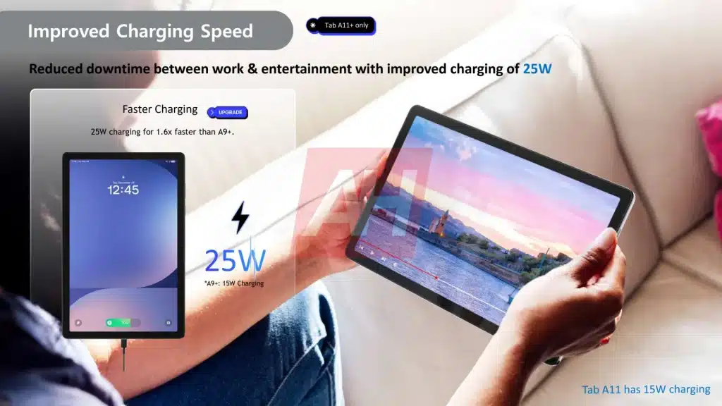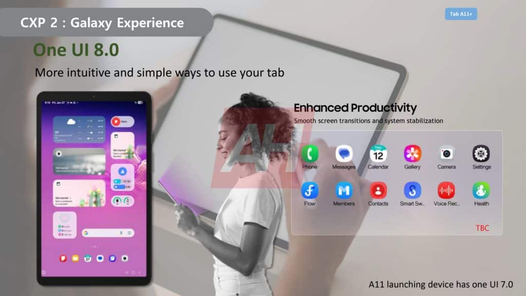 Both tablets will be available in Silver and Gray color options. The Galaxy Tab A11 will be offered in LTE and Wi-Fi variants, while the Galaxy Tab A11+ will come in 5G and Wi-Fi models. The Tab A11+ supports faster 25W charging, whereas the base model makes do with 15W charging. Interestingly, the Galaxy Tab A11+ is set to launch with One UI 8, while the Galaxy Tab A11 will debut with One UI 7. Yes, it makes no sense at all. Take a look at some of the marketing materials below.