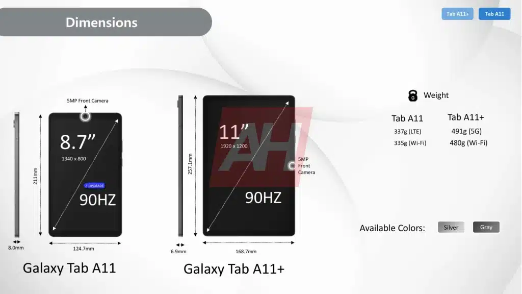 Galaxy Tab A11 and Tab A11+ official-looking renders are out!