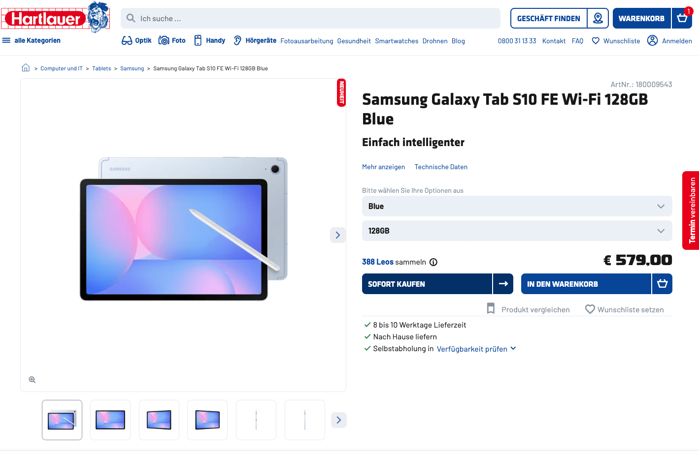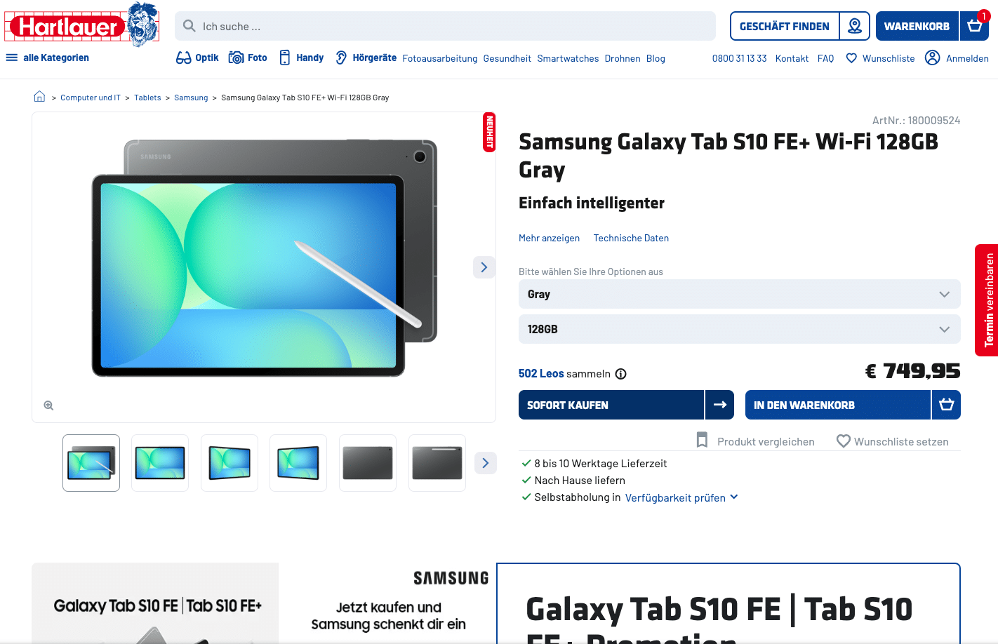 Galaxy Tab S10 FE (via Hartlauer)