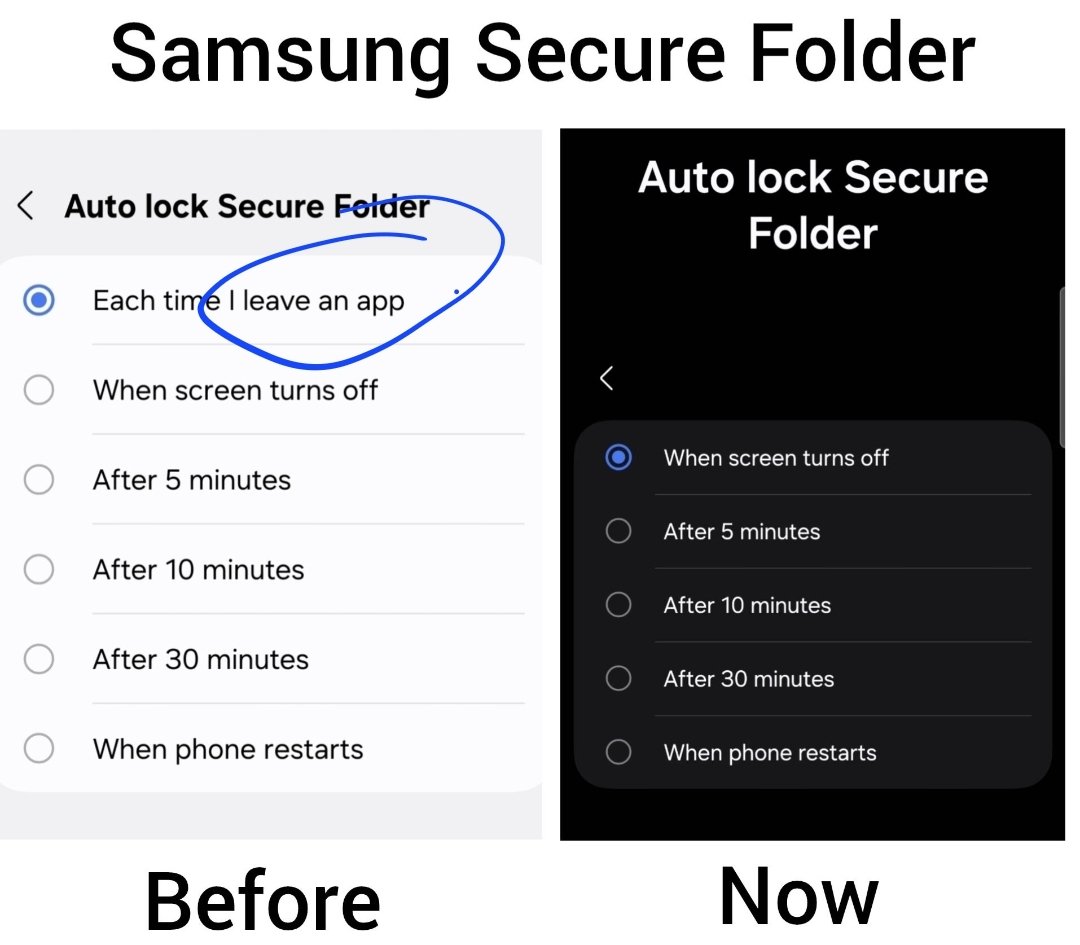 For users who want to automatically lock their sensitive apps and files the moment they leave the app, this feature is undoubtedly an important layer of security. If you want this security option back, you can visit the tipster’s post and then log in with your Samsung account to like or comment. This might grab the company’s attention and may address it in a future update.