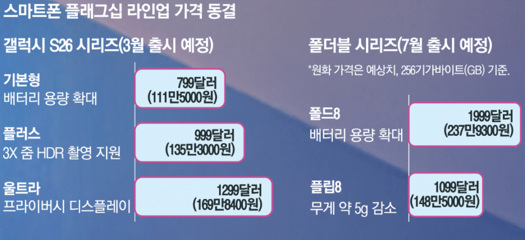 According to the Korean media, Samsung will price the Galaxy Z Fold 8 at $1,999 and the Flip 8 at $1,099. If accurate, we are looking at a zero hike over the 2025 foldable lineup. As mentioned above, the Galaxy S26 series is also rumored to debut at the same prices as the S25 lineup. Some regions may still see a minor hike because of local taxes and other headwinds.