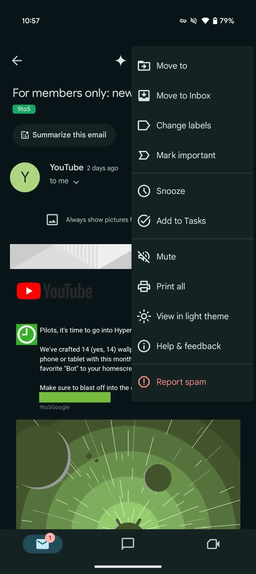 First spotted by 9to5Google, the Gmail app now includes icons next to the options in the three-dot menu and uses line separators to organize the sections. There are four sections in total. The first one contains Move to, Move to Inbox, Change labels, and Mark important.