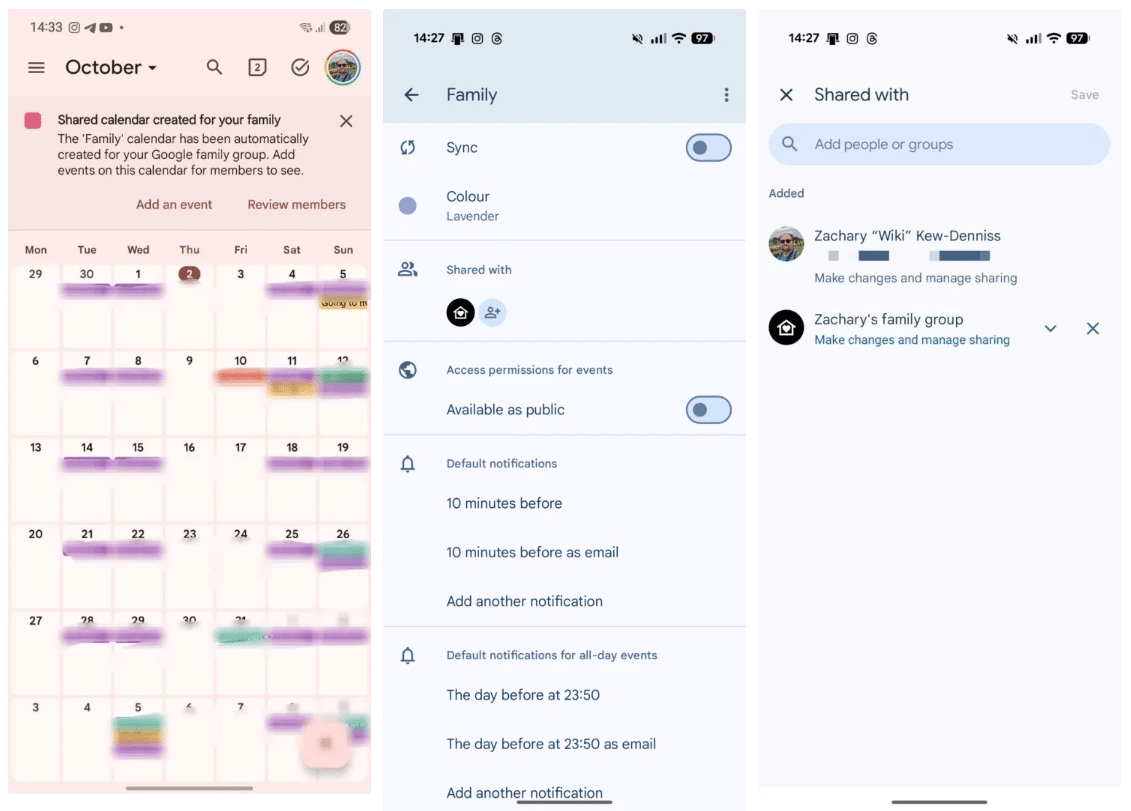 To use the new features in your Calendar app, head over to this route: Menu > Settings. Now, you can tap the calendar you want to manage. You will see a “Shared with” section, where you can add new people or remove them. Similarly, if you want to unsubscribe from a calendar someone has shared with you, you can do this from the settings page.