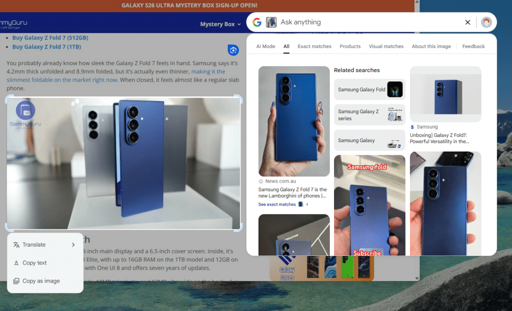 If that wasn’t enough, there is also Google Lens, which brings a Circle to Search-like experience to the big screen. You can copy and translate text, as well as search images. Check out screenshot below.