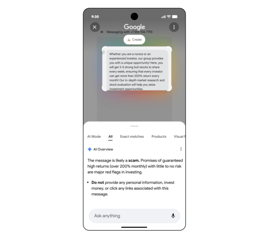 AI Overview in Circle to Search can now detect suspicious messages