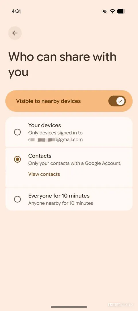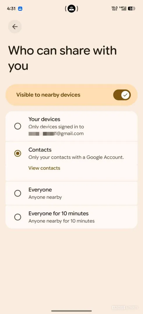 First spotted by Android Authority, in the beta version of Google Play Services v.26.06.31, Google plans to remove this persistent setting and replace it with a temporary visibility mode: “Everyone (only for 10 minutes).” Instead of staying open indefinitely, your phone would become discoverable to everyone only for a short period. This happens when you initiate sharing.