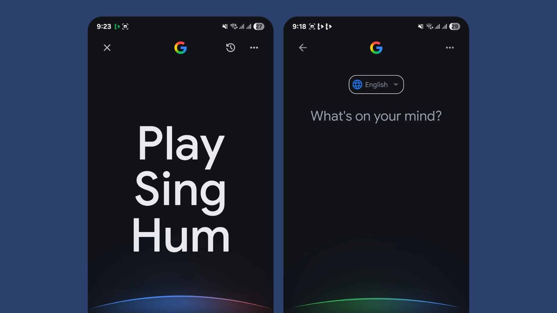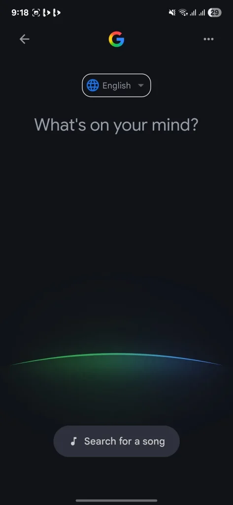 The updated design simplifies the interface by removing previous and suggested searches from the main voice search screen. In their place, a pulsing animation similar to the one used in Google’s AI voice mode greets users with the prompt, “What’s on your mind?” The song search page has been redesigned to match this style, featuring the same pulsing effect and a larger, more prominent “Play Sing Hum” button that stands out on the screen.