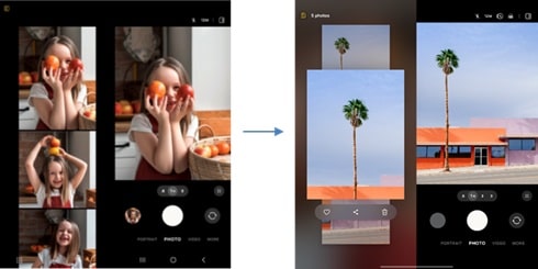 Samsung has also added playful animation effects around the cover camera hole. These activate during the camera app launch, portrait and night modes, and when video recording starts and stops. The camera settings menu has been redesigned for quick access. With swipe gestures, users can now swipe up or down anywhere on the camera screen to open the Quick Control menu and toggle between camera modes or settings with fewer taps
