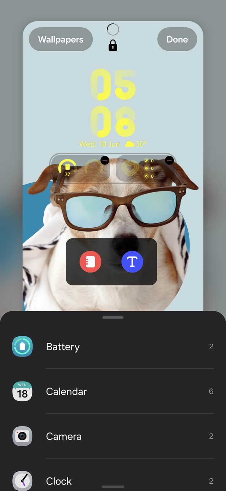 That’s it! The widgets will now appear just below the clock when you tap your screen in standby or on the lock screen. As mentioned earlier, you can add up to four 1×1 widgets. If you select a 2×1 widget, it will count as two separate widgets.