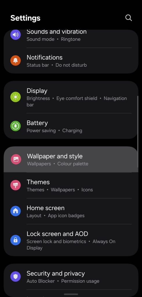 - Open Settings and go to Wallpaper and style (you can also long-press on the home screen and select Wallpaper and style on the bottom toolbar)