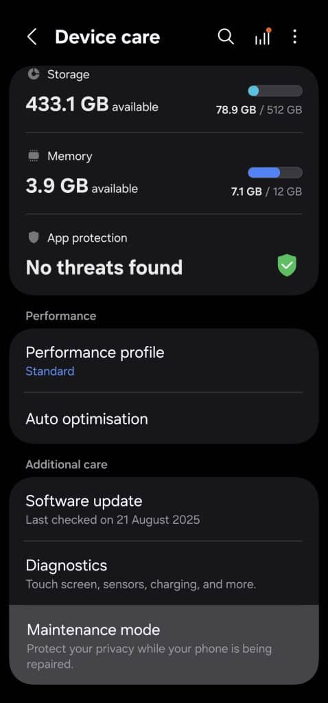 Built into One UI, it locks down your data while still keeping the device fully functional. Technicians can diagnose, repair, and test your Galaxy phone as usual, but without access to your personal files, apps, or accounts. Here’s everything you need to know about how Samsung’s Maintenance Mode works and why it’s a must-use feature before your next service visit.