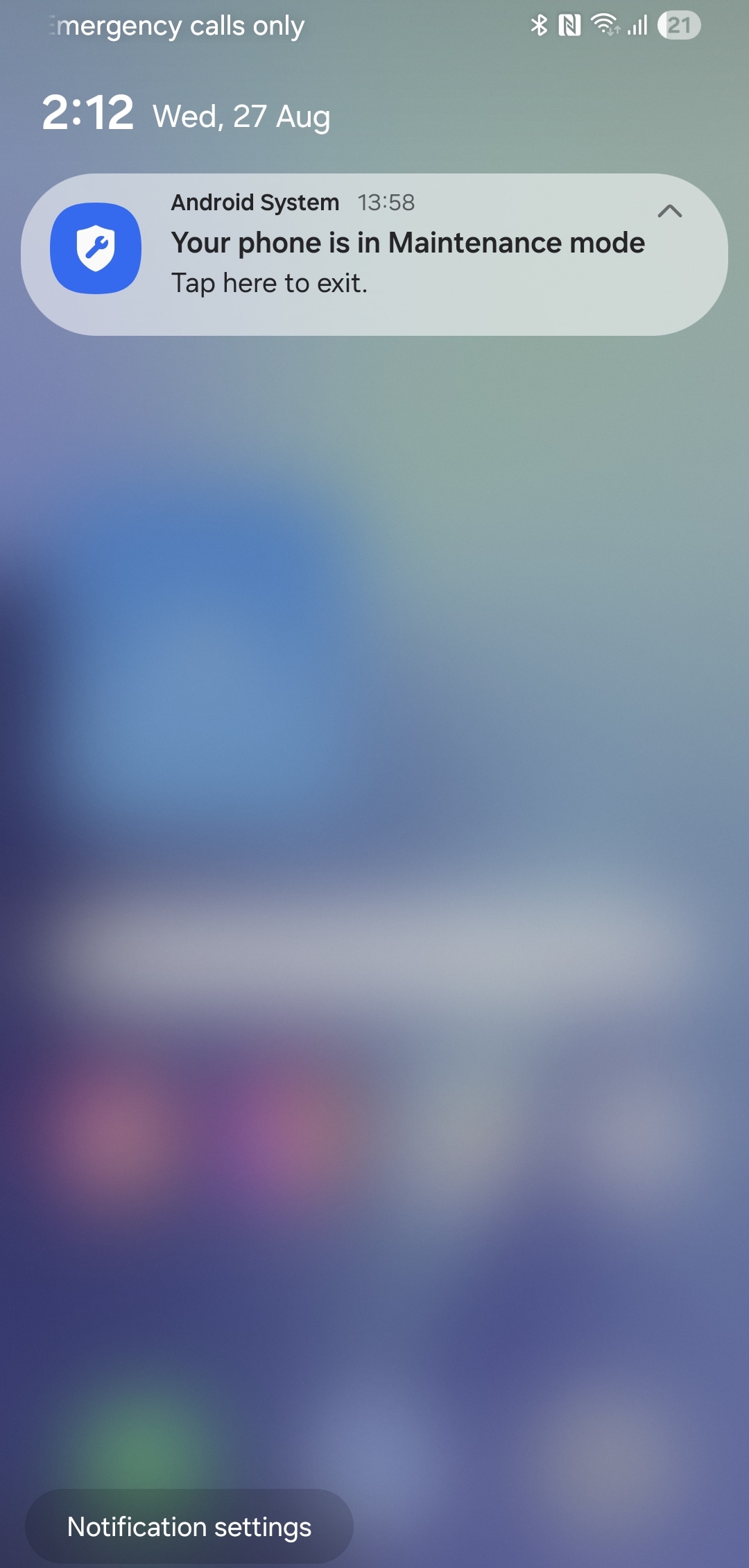 Your phone will now restart in Maintenance Mode, indicated by a small overlay on the bottom left of the screen. At this point, it’s safe to hand over your phone to the technician — they can’t access your data (you can verify yourself before handing it over). Once the repair is complete and you get your phone back, follow the steps below to exit Maintenance Mode.