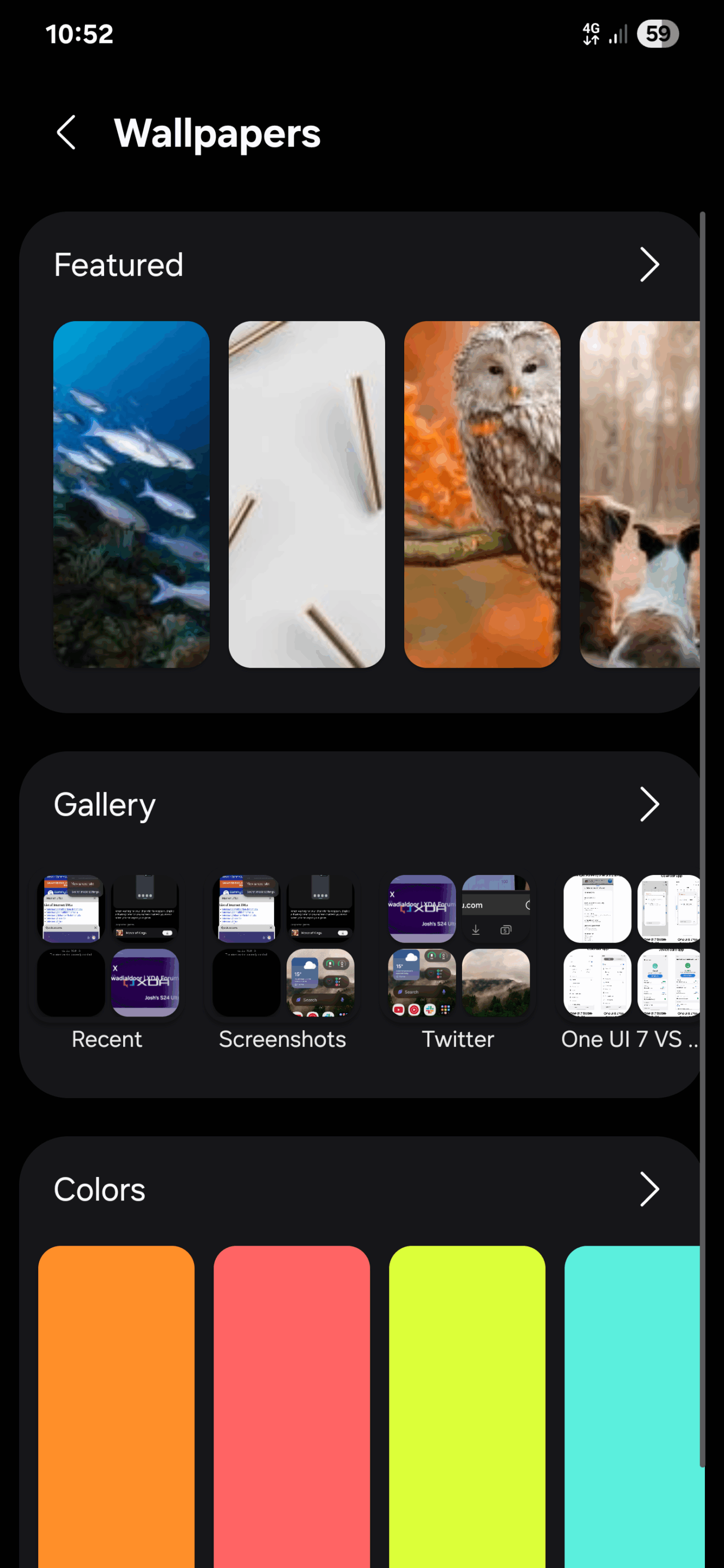 The From other devices carousel got a fade effect on the left and right sides, instead of the harsh cut-offs we had before. Additionally, you can now load any image from your gallery for the wallpaper, alongside a selection of featured wallpapers and some solid colours too.