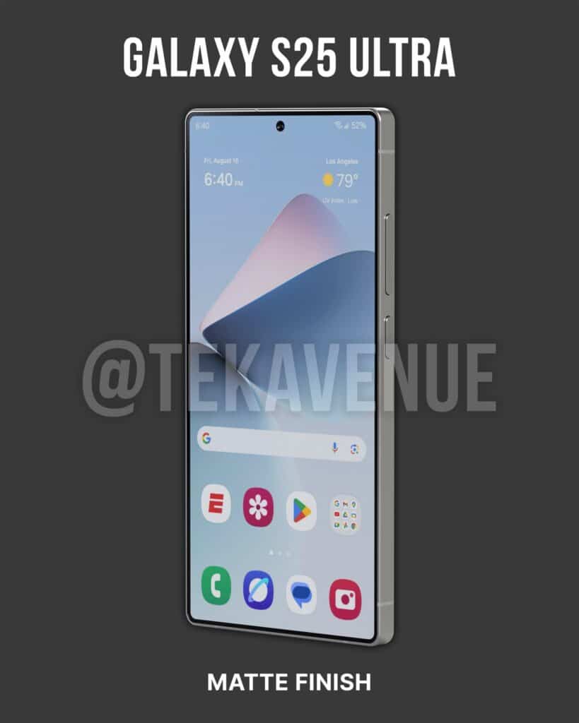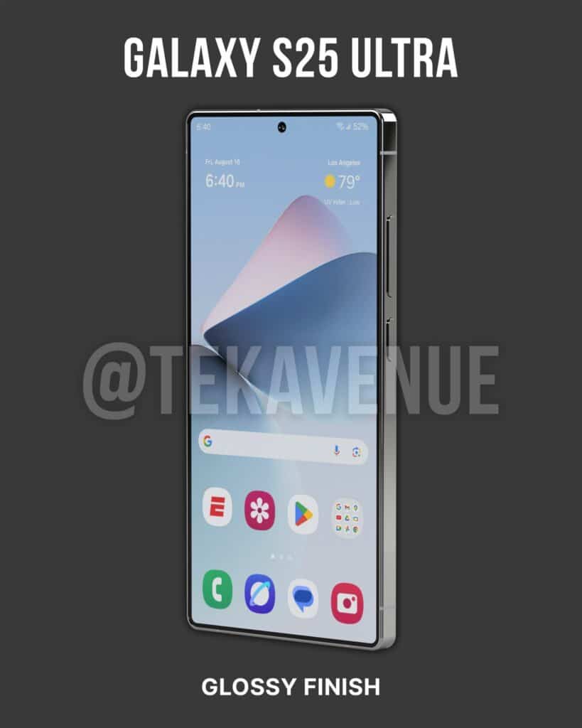 Industry insiders say Samsung made this change to allow for a more comfortable handling of the device. It reduced the bezels to make the screen wider, even though the overall width has dropped a few mm — the Galaxy S25 Ultra is 77.6mm wide instead of 79mm but has a 73mm wide display instead of 72.3mm. X user @TekAvenue created renders to show how the phone would look with a matte and glossy finish.