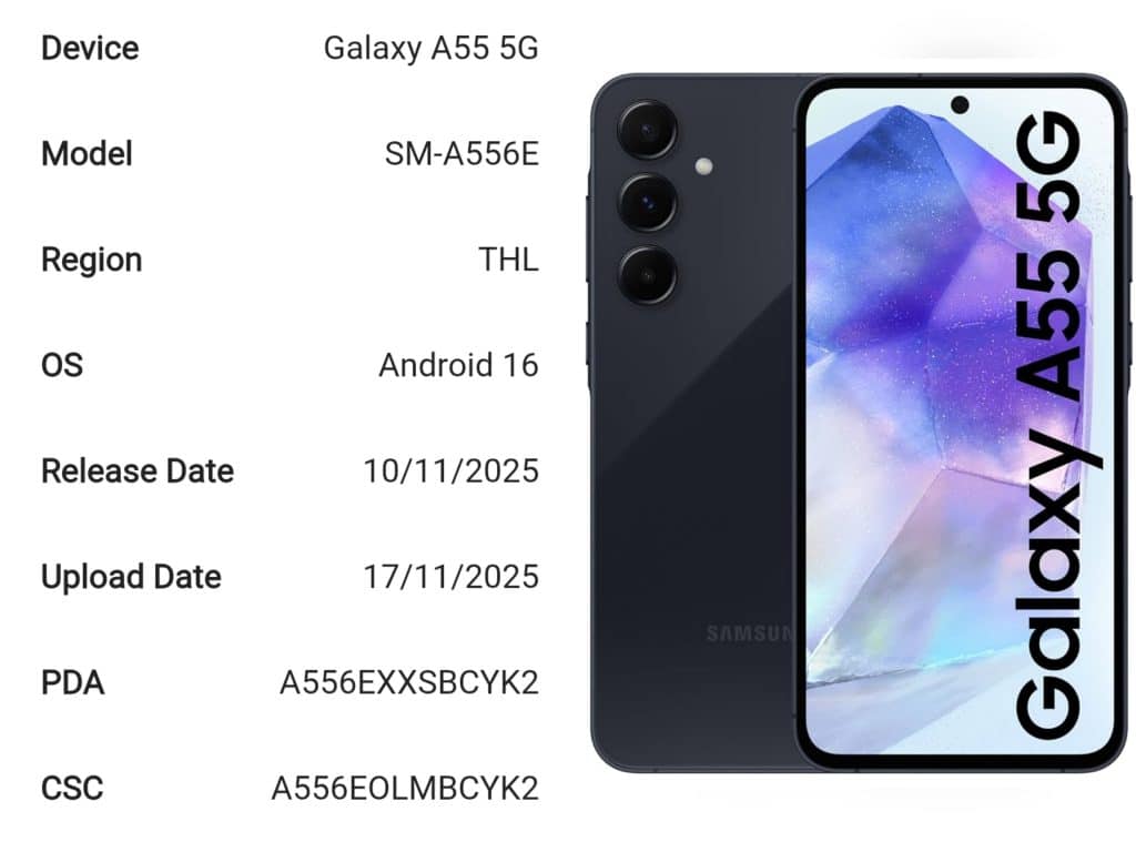 The Galaxy A56 has started receiving the latest November 2025 security patch in several South Asian regions, including Thailand, Vietnam, Malaysia and the Philippines. The update comes with the build number A566BXXS7BYK4 and is based on One UI 8. It mainly improves device stability and brings the usual security enhancements. Meanwhile, the Galaxy A55 is picking up the Android 16-based November 2025 security update in Thailand and Vietnam with the build version A556EXXSBCYK2.