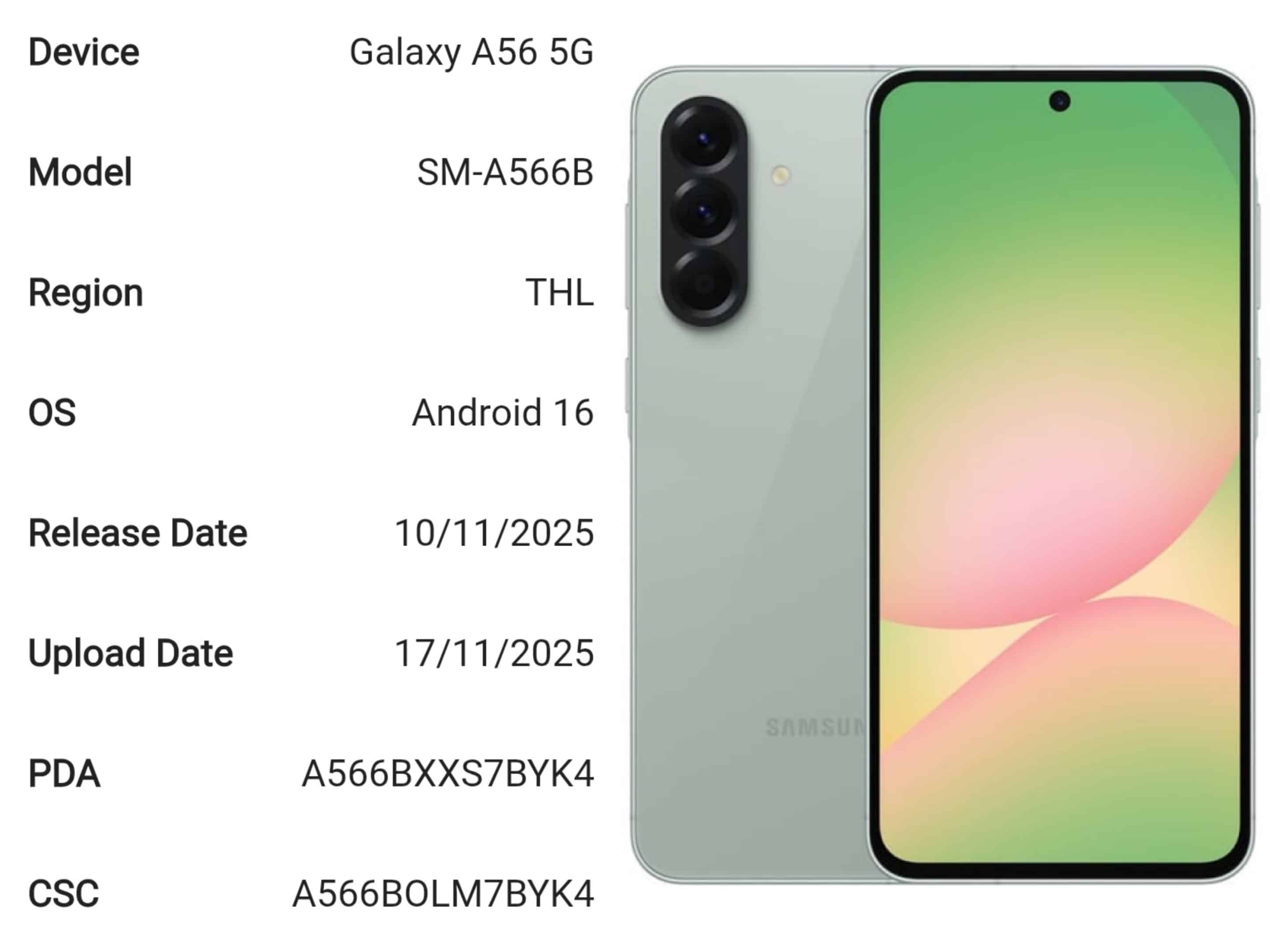 The Galaxy A56 has started receiving the latest November 2025 security patch in several South Asian regions, including Thailand, Vietnam, Malaysia and the Philippines. The update comes with the build number A566BXXS7BYK4 and is based on One UI 8. It mainly improves device stability and brings the usual security enhancements. Meanwhile, the Galaxy A55 is picking up the Android 16-based November 2025 security update in Thailand and Vietnam with the build version A556EXXSBCYK2.