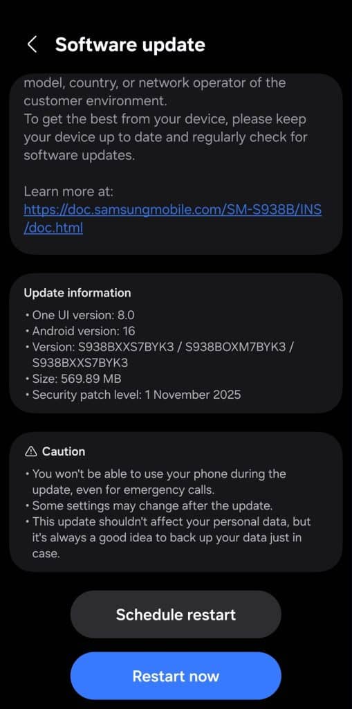 The new release arrives with firmware version S938BXXS7BYK3 and weighs in at 569.89MB for the Galaxy S25 Ultra. Other models should get a similar-sized update. The official changelog confirms that the update is all about the latest security fixes. The November security release for Galaxy devices addresses over 40 vulnerabilities, including both Android OS-level patches from Google and Samsung’s own security enhancements.