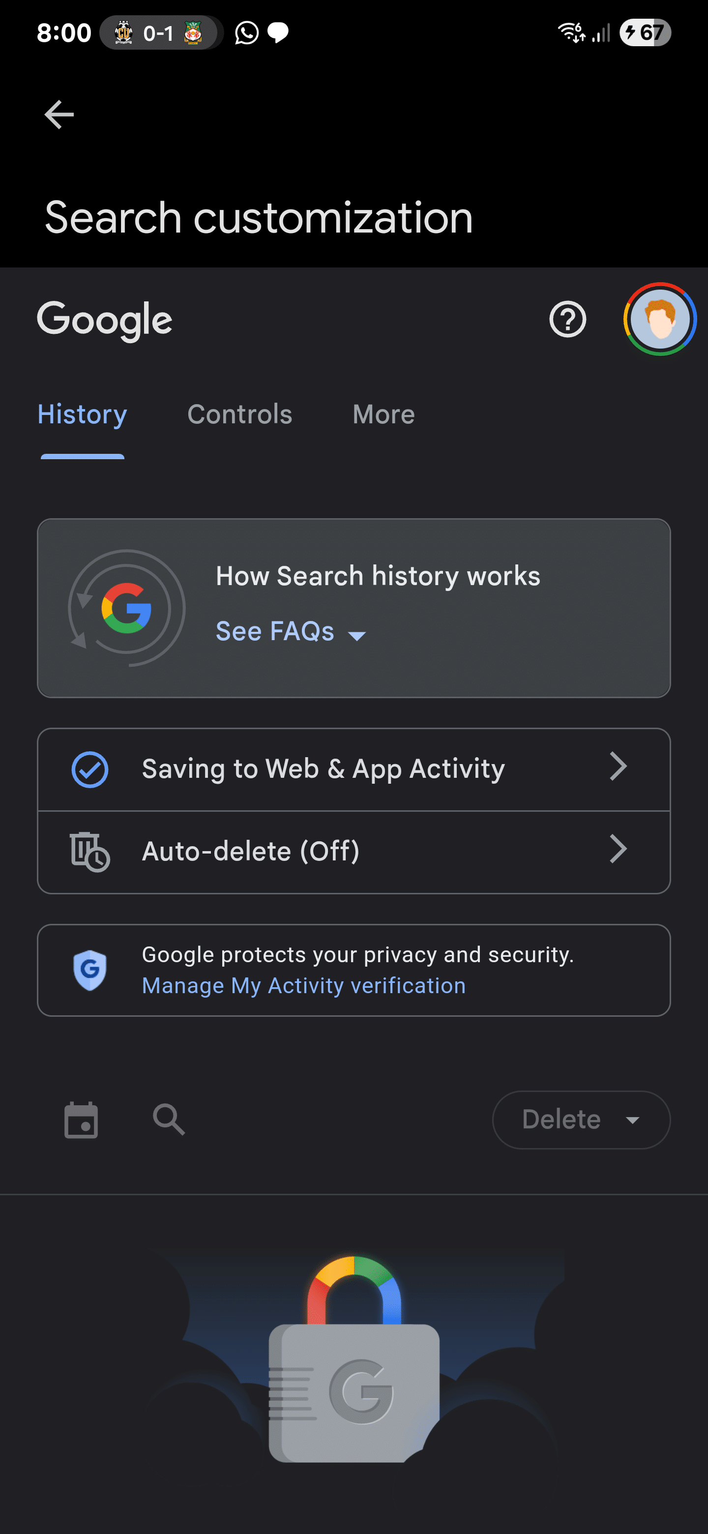 Once you have done that, back out to Settings, and go to Lock Screen and AOD. Then tap Now bar, and then Sports with Google. You should notice two highlighted links within the description, with an accent colour. Now click into each option, Personalise Search and Web & App Activity, and turn them off. For the latter, you don’t need to delete your existing Google search data.