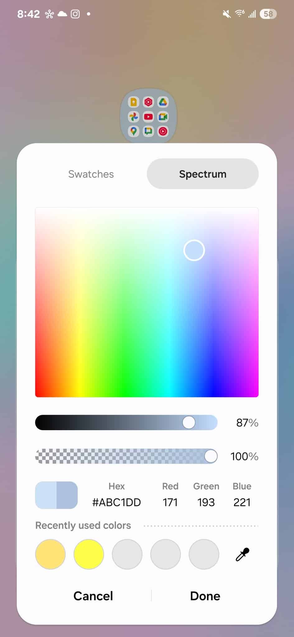 It’s super simple. Just tap the new eyedropper tool in the color picker, pick the exact shade you want, and give your folder its unique personality. Honestly, only a small group might care about this change, but it’s a nice touch.
