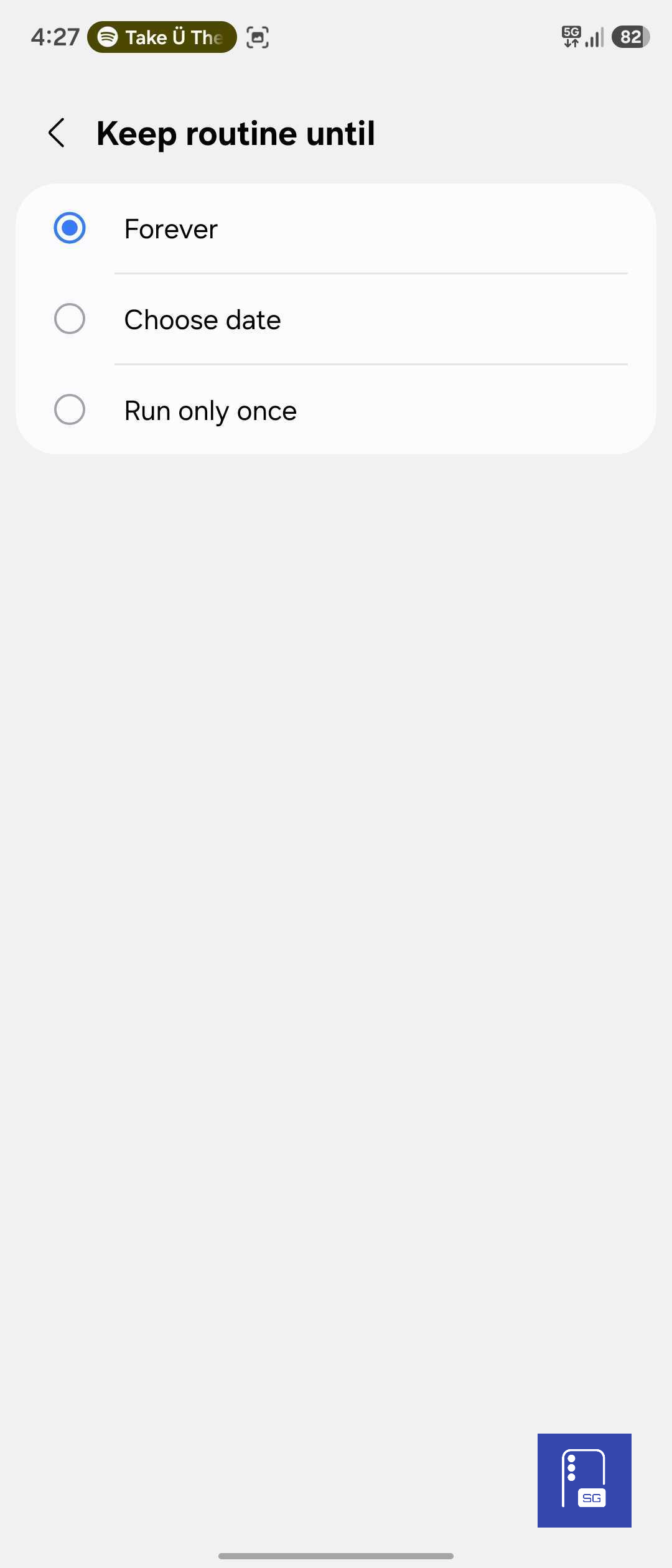 Instead of running indefinitely, routines can now follow one of three schedules: forever, choose date, or run only once. Previously, routines typically stayed active unless users manually disabled them. With the new system, you can automate tasks for specific time periods. Alternatively, you can set one-off actions.
