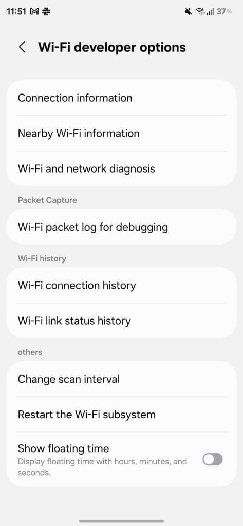 Furthermore, One UI 8.5 has added a new option called Show Floating Time within the Wi-Fi developer page. This feature displays the floating time of your Wi-Fi connection, including hours, minutes, and seconds. As we dig into the early One UI 8.5 builds, more changes and improvements may come to light. We will be sure to keep you updated.