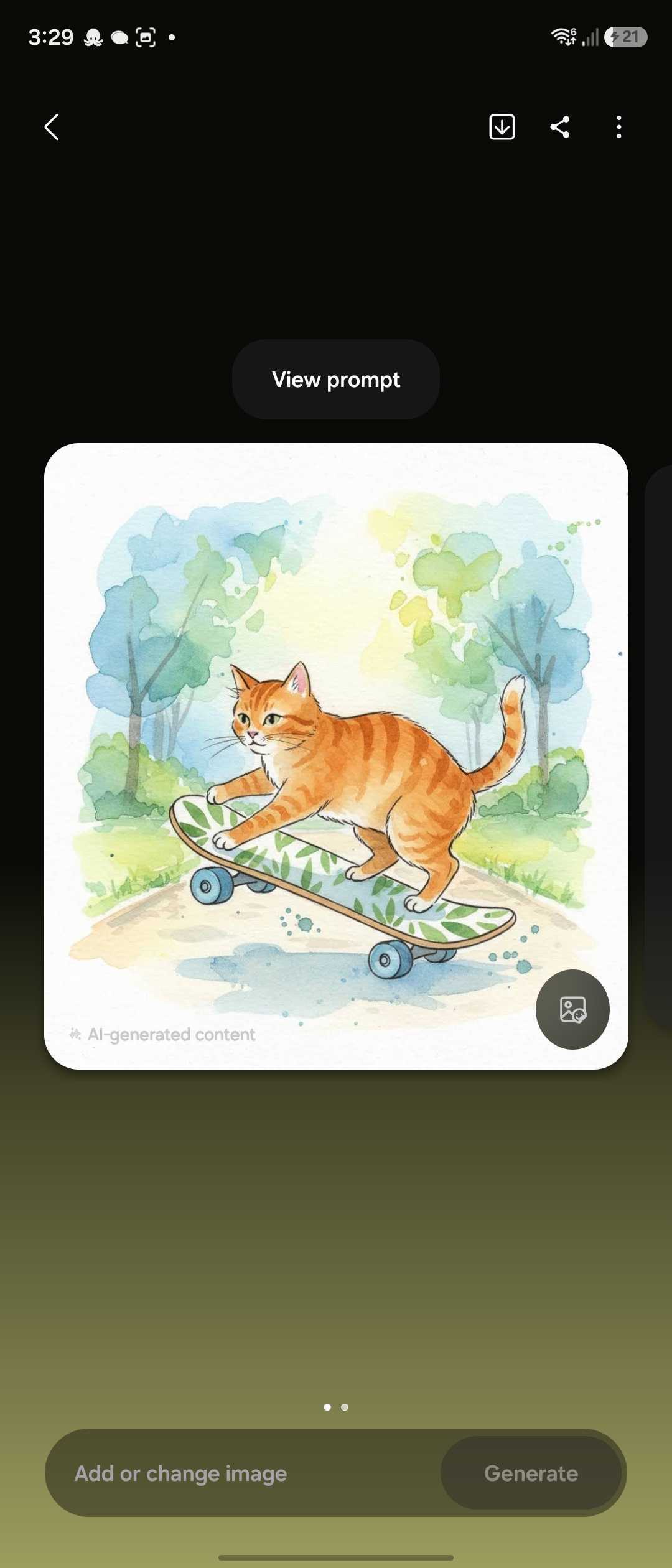 Once you’ve written your prompt, hit Generate and give it a few seconds. You’ll get your image back shortly after. You can tweak it using the text bar at the bottom of the screen or tap Generate again to make further edits. You can also add stickers, images, or text to personalize it. Once you’re happy with the result, you can save it or share it with your friends.