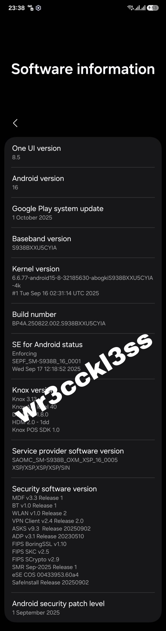 In another set of screenshots (added below in the gallery), you can see the device running One UI 8.5. The build number is S938BXXU5CYIA, featuring the September security patch. Notably, this build has been modified to run on the Galaxy S25 Ultra.