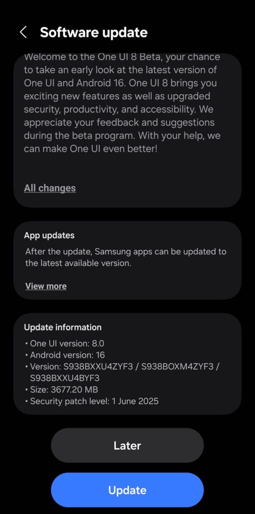 The second beta build weighs around 1.2GB for the Galaxy S25 Ultra running Beta 1. However, since it’s the first beta release in India and Poland, the OTA (over the air) package is bigger, weighing around 3.6GB. With this release, Samsung is updating the Galaxy S25 trio to the June security patch.